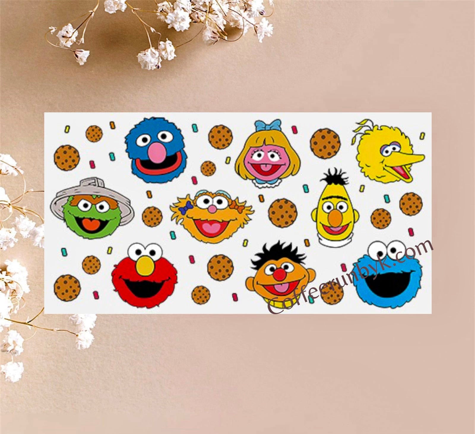 🌸Great for all businesses or personal use as well.  Can be applied to any hard flat surfaces. Listing is for transfer film with image only. Cup not included. Aprox Sizes: W 9.5 in X H 3.9 in